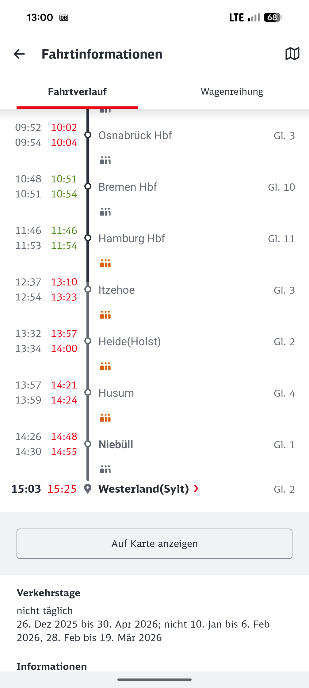 Die Push-Nachrichten scheinen jetzt zu funktionieren. Nachrichten über Verspätungen, Gleiswechsel oder Wagenreihung kamen bei mir rechtzeitig an und nicht erst, wenn man bereits im verspäteten Zug sitzt. Auch die Anzeigen der Nachrichten während der Fahrtverlaufes und die bei Verspätungen direkt kalkulierten, neuen Ankunftszeiten mit direkten Links zu Anschlussmöglichkeiten in den jeweiligen Halte-Bahnhöfen, funktioniert jetzt. Ebenso die Karte mit den GPS Koordinaten der aktuellen Zugposition.